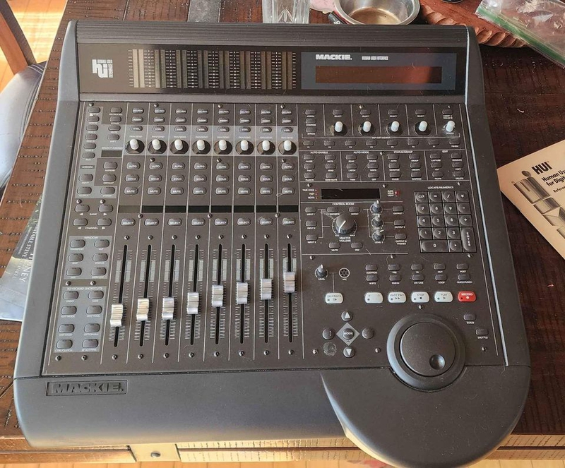 2. Comes with Midi Cable for connection, original box, manual, product card, and mounting hardware. Works great. no issues afaik. a few buttons have a bit of paint worn a bit, but not completely gone. No problems seeing what they are. $300 +shipping. Or make a serious offer. listed on FB marketplace as well. Mackie's new Human User Interface, first previewed in SOS January '98, was designed to offer a hardware interface for software‑driven digital audio workstations. Digidesign's Pro Tools 4.1 software is the first to support the device, although Mackie intend that other DAWs will eventually also be able to work with the HUI. So what is HUI for? Well, as most SOS readers will know, Pro Tools' onscreen mixer is normally controlled using your computer's mouse. The problem, however, is that a mouse is far from being the ideal device for controlling a mixing console — it is difficult to drag the faders smoothly, and 'turning' knobs on screen can be awkward, to say the least. Consequently, several hardware controllers have been developed as an alternative to software front‑ends over the years, including models from Penny & Giles and JL Cooper: all of these, however, offer only a limited number of controls compared with the HUI, which seeks to give the operator hands‑on control of virtually all of Pro Tools' mixing and editing parameters, as well as a full set of transport and locator controls. At first glance, the control surface looks rather like a compact digital mixer, with eight assignable faders, associated Select switches, and an electronic 'scribble strip' which picks up the channel names from your Pro Tools project and displays these handily above the faders. This feature alone won my instant approval! The faders are motorised so they move to reflect automatically the positions of Pro Tools' onscreen faders. The HUI also has a built‑in meter bridge with eight pairs of dual LED 'ladders'. With mono Pro Tools tracks, only the left LED 'ladder' lights up, while both are used with stereo channels. Having these meters just where you need them is great, especially if you are using the ADAT Bridge interface, for instance, which, unlike Digidesign's 888 I/O hardware, doesn't have any meters.