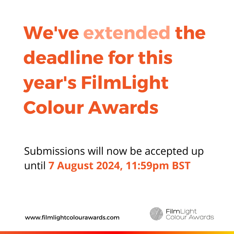 DEADLINE EXTENDED! Due to demand, we’ve added a week’s extension to give you more time to get your entries into this year’s FilmLight Colour Awards. The final deadline is now Wednesday 7 August 2024 at 23:59 BST. Submit your project via the website: https://loom.ly/oUW_B-w