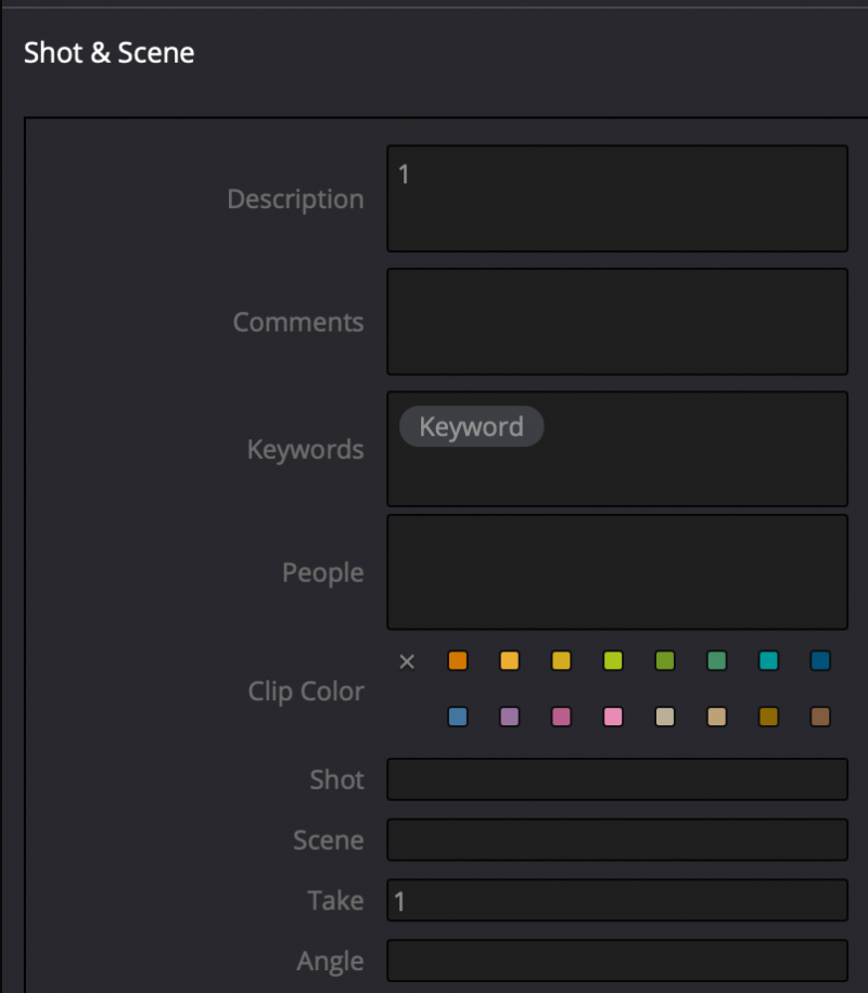 5. Thanks Bruno, I had another look at it today. I managed to solve the issue in Resolve by "Exporting metadata to" in the edit page. Opening the csv file in Numbers then creating a new field for Scene and pasting the data from the Desc field into the new Scene field. I then used "Import Metadata to" to update the metadata in resolve. (And yes I think I incorrectly pasted the wrong screenshot above.)