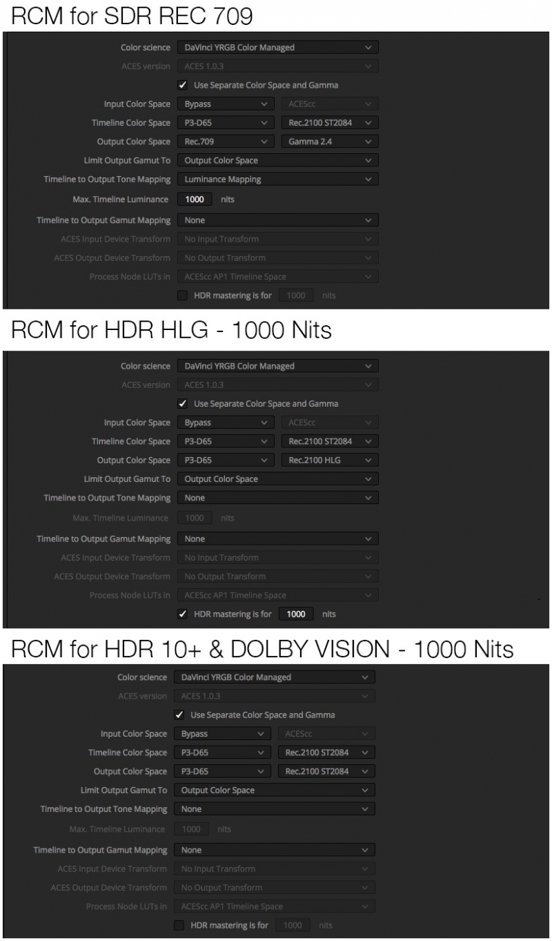 1. Hi all, Grading mainly documentaries, I'm trying to set up the best (or more universal) Resolve Color Management settings. The Input Color Space may vary depending on sources footages. After doing several tests, I think working with Timeline Color Space set to P3-D65 and Rec2100 ST2084 offers a great environnement for projects going both for Rec709 and HDR (even for HLG). Nevertheless, I was wondering if it would be wrong to set the Timeline Color Space to Rec2020 ? Because when testing I felt like the chroma and highlights are nicer in 2020 and I didn't noticed any aberrarations on the scopes. But would it pass the QC ? Still, as nothing can handle the full 2020 spectrum, I've always followed recommendations to limit the Output Gamut to P3-D65 for HDR deliveries. Do you know if the are any change for that ? Have you already delivered HDR in 2020 Color Space ? Any comments or advices from RCM users would be very welcomed.